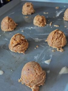 - Form the Cookies: Using a spoon or cookie scoop, portion the dough into small balls (about 1 tablespoon each) and place them on the prepared baking sheet. Leave a little space between each cookie for spreading.