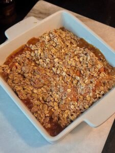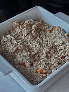 • Sprinkle the oat-almond topping evenly over the apricot filling.